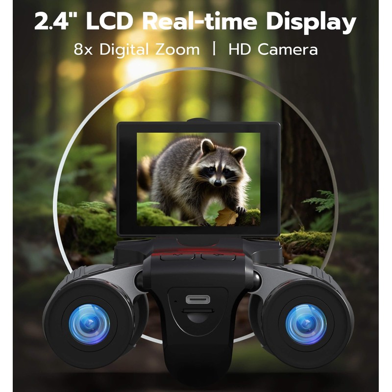 - 【Comfortable and Easy to Use】 Designed with ergonomic grips and intuitive controls, these binoculars ensure stable viewing and effortless recording, making them beginner-friendly yet professional in performance.