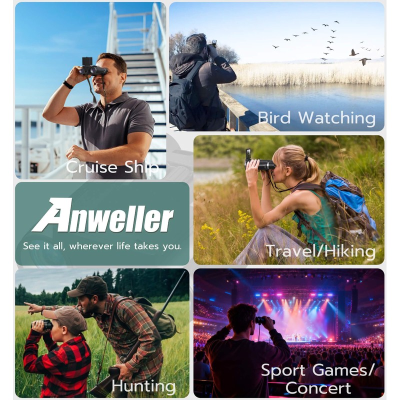 Anweller Binoculars with Camera, 12x32 High Powered Compact Binoculars for Adults and Kids, for Bird Watching, Cruise Ship, Hunting, Travel, Hiking, Sport Games, Concert