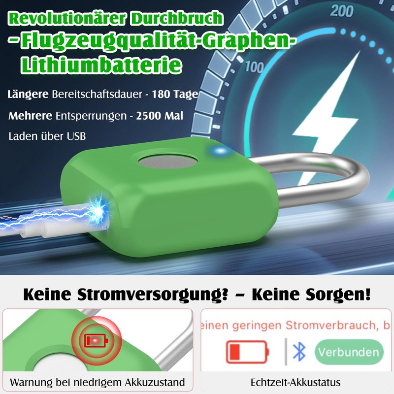 • Long running time: Anweller padlocks have lower power consumption and a longer standby time. The USB rechargeable 110mAh lithium battery can support up to 6 months standby time on one charge. When the battery is empty, the fingerprint lock remains locked, simply connect to a USB power supply and restore.
