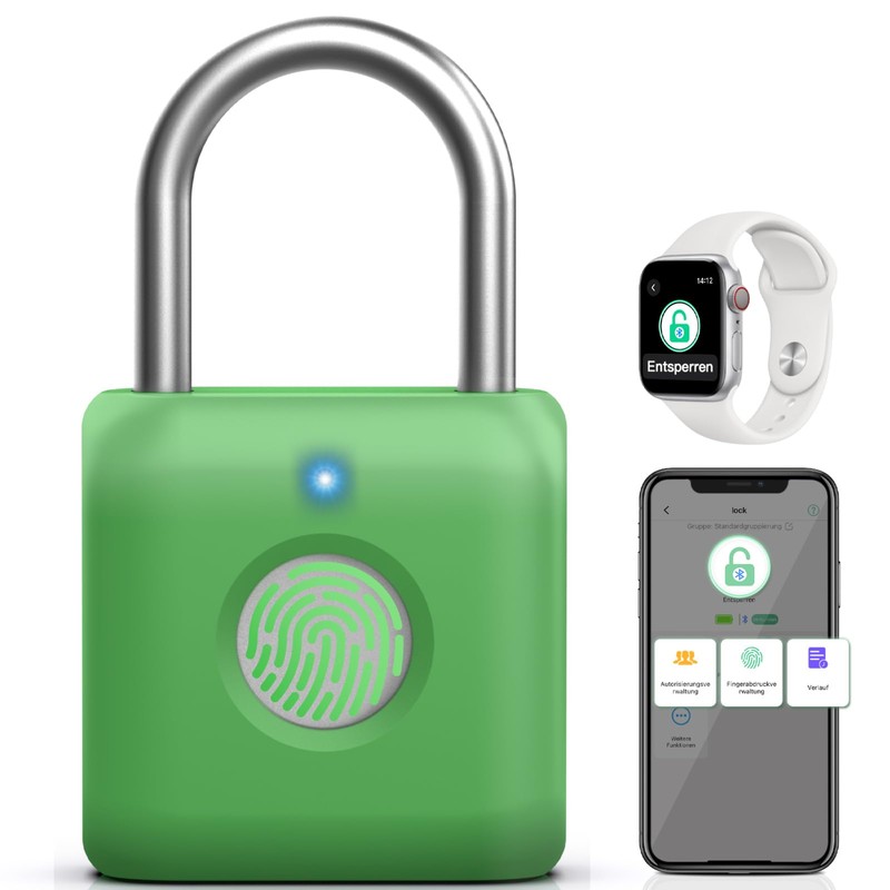 Anweller Smart Lock with Bluetooth, Fingerprint Lock, Padlock, Fingerprint, Small for Gym, Office, Home, Garden (Avocado Green)