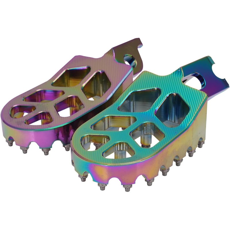 ANODIZED SURFACE - After anodizing treatment, a beautiful oxide film is attached to the surface, which s the wear resistance and corrosion resistance of this dirt bike foot peg. The two shades of black and green are very suitable for the theme colors of motorcycles.