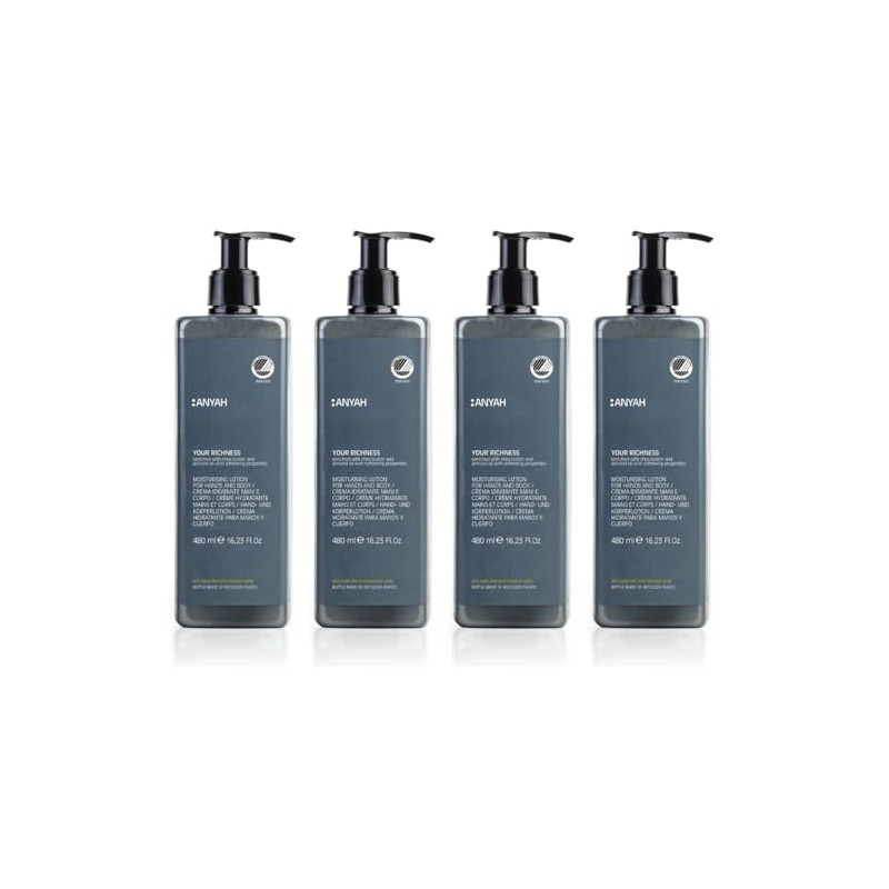 ANYAH Moisturizing Lotion 4 x 480ml – Intensive Hydration & Skin Protection for Dry Skin, Nordic Ecolabel Certified, Eco-Friendly & Vegan Formula - Non-Refillable