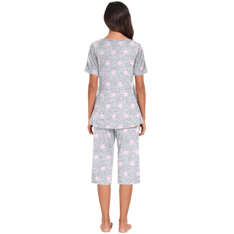 Anyally Women's Pajama Set Short Sleeve Top and Sleepwear Pants 2 Piece Lounge Sets Summer Ladies Pjs Sets with Pockets, L Star Grey