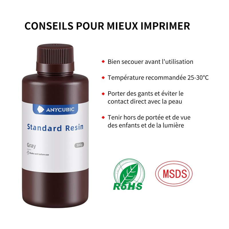 - STORAGE METHOD: ANYCUBIC Resin recommended to store at 15℃-35℃. The lower the temperature, the higher the resin viscosity. Keep sealed to avoid moisture