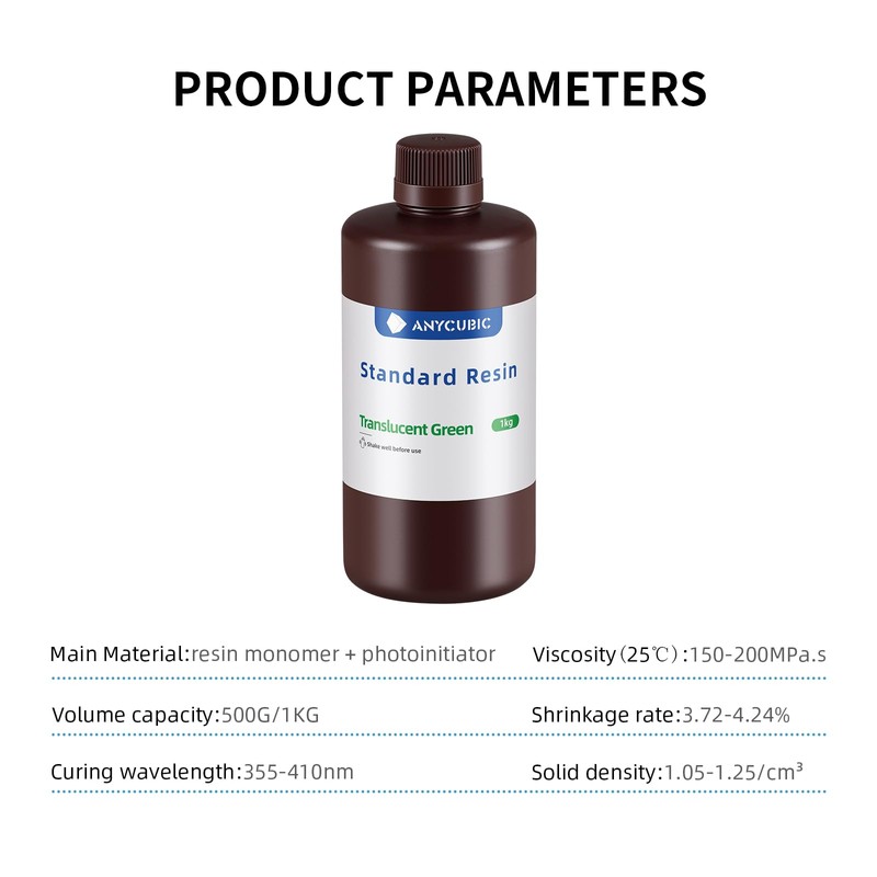 - HIGH PRECISION: ANYCUBIC Printing resin has low shrinkage and high precision, 3D resin shrinkage rate of 3.72-4.24%, to ensure the high precision and smooth surface of the model, and perfectly restore the 3D printing works