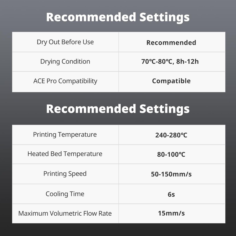 - 【RFID Empower Intelligent Printing】Anycubic filaments are equipped with the RFID intelligent recognition system for optimal printing efficiency when paired with ACE Pro. Automatically recognizes printing information to achieve a convenient and intelligent printing process.