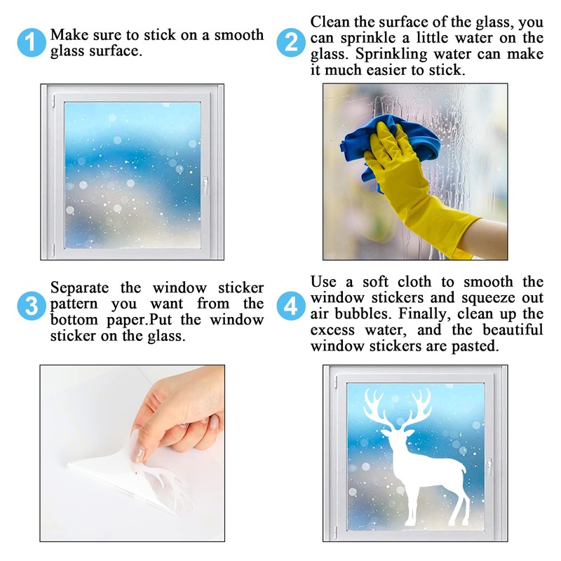 - HOW TO USE: Made from durable and premium material. Before use, you can spray some water on the window, so that the window clings can be more firmly attached to the window, easy to peel, leaving no traces when it is torn off, and the window clings can be reused.