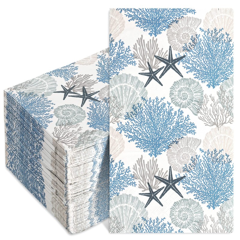 AnyDesign - Servilletas de papel desechables para invitados con estrellas de mar, concha de mar, coral, con temática de playa, cena, servilleta de mano para el hogar, cocina, baño, fiesta, suministros de 3 capas, 13 x 15.7 pulgadas