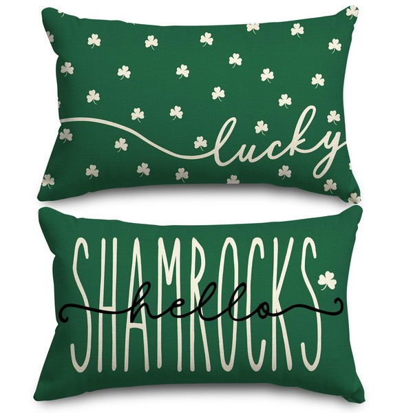 AnyDesign St. Patrick's Day Rectangle Pillow Covers Green Shamrock Lucky Clover Throw Pillow Case 12 x 20 Inch Farmhouse Spring Cushion Cover Cases for Irish Holiday Party Home Couch Sofa Car, 2Pcs