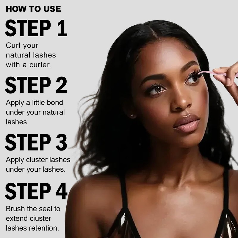 Attach clusters 2mm above your lash line, focusing on outer corners for a cat-eye effect. Hold 3 seconds to bond. Pro tip: Start with 3-5 clusters per eye and build density!