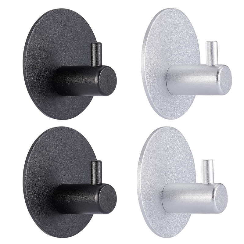 Anyffei 4Pack Adhesive Towel Hooks, Black and Silver Matte Towel Hooks Heavy Duty Waterproof Stainless Wall Hooks for Coat/Robe/Towels Stick on Bathroom/Kitchen