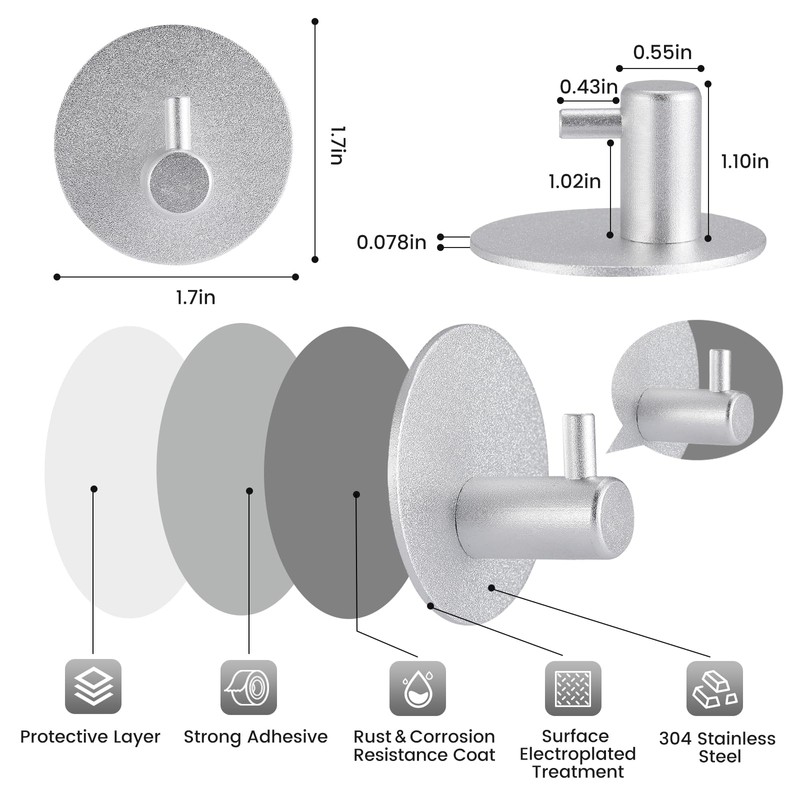 - 【Packing】: Self-adhesive hook (1.7*1.7IN)*4. Two black and two silver packages can meet your needs for different colors for different environments.