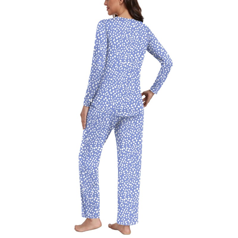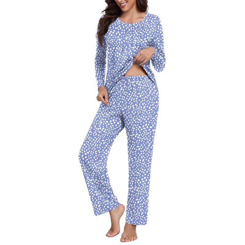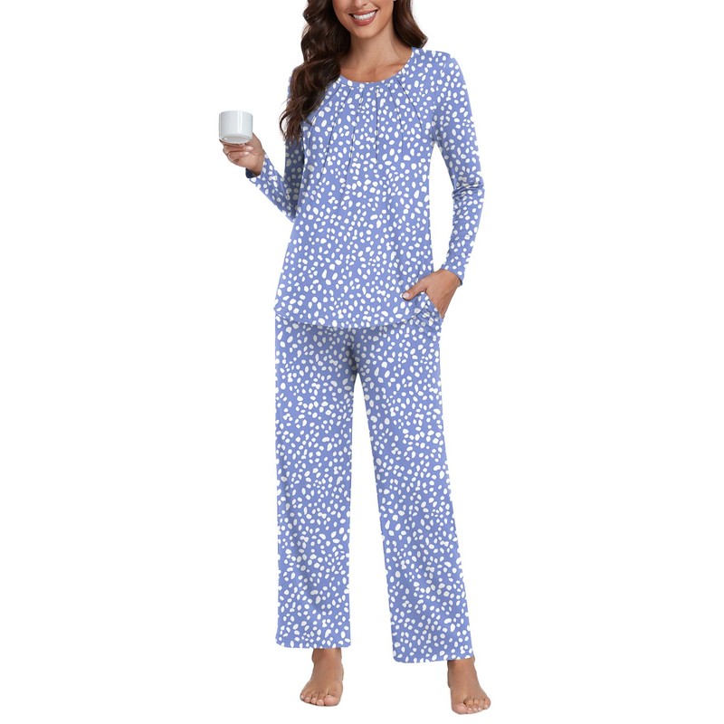 Anyhold Plus Size Womens Fall 2 Piece Pajama Sets Long Sleeve Ladies Pjs Lounge Sleepwear with Pockets X-Large, Spotted Blue