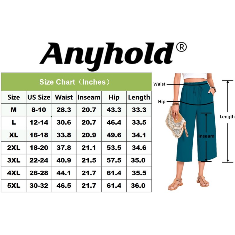 • Features: Designed for versatility, these women's capri pants feature a high waist, wide leg, and a convenient drawstring closure with elastic waistband for easy adjustment. The capri length and functional pockets add practicality to these pants, making them perfect for everyday wear.