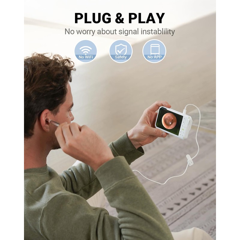 - 4.0" Screen otoscope - View a stable live image of your inner ear directly on the 4.0" HD screen without the need for any additional apps or concerns about potential issues with your cellphone. This otoscope is ready to use right out of the box