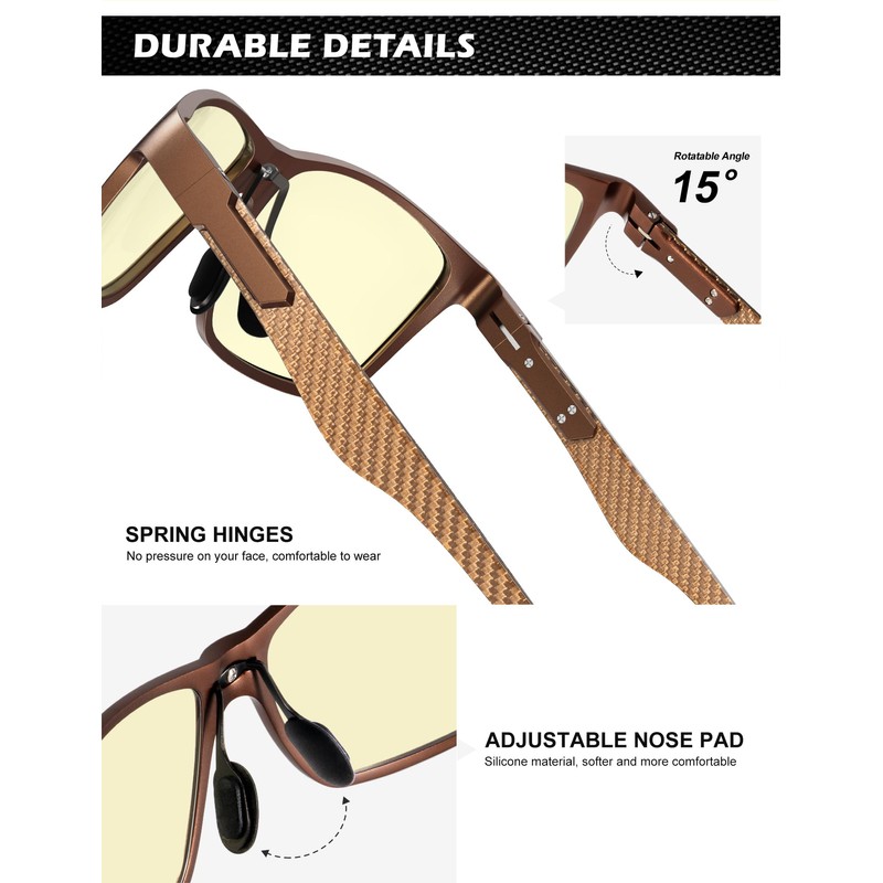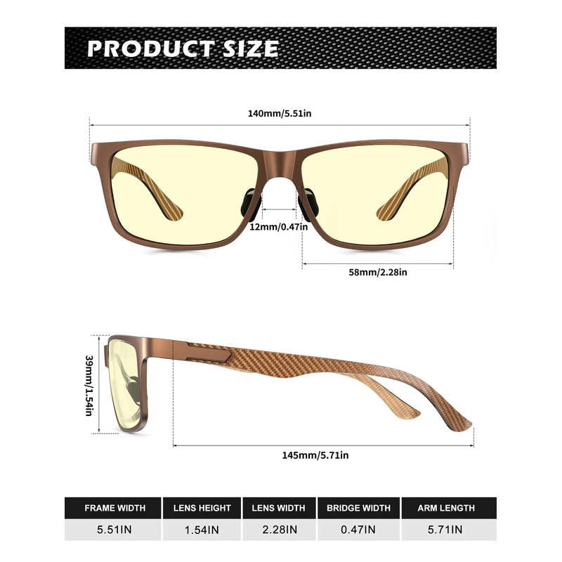 - Premium Temple Material: With superior Al-Mg and carbon fiber composite temple, this type of blue light blocking glasses for men is ultra-light than pure metal frame, also more sturdy. No more worries about broken temples. As more suitable for anyone who often work or play games by the computer, do not miss this pair of practical and classic blue blocker glasses.
