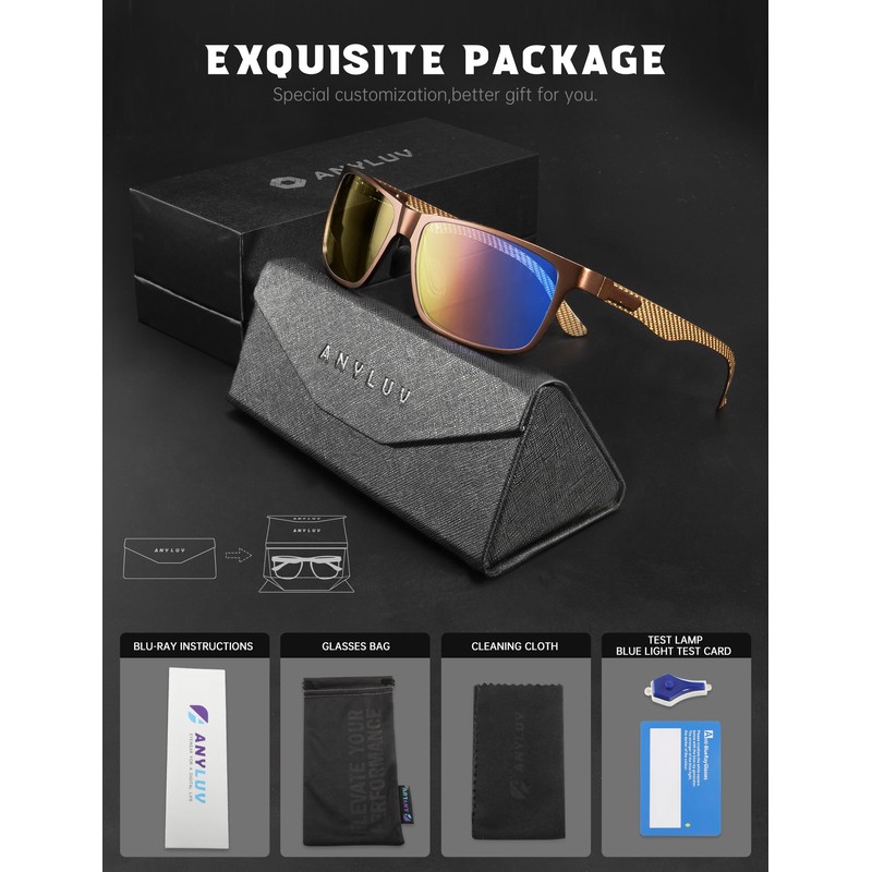 - Blue Light Filter Glasses: Coating with excellent multiple blue filter layers, ANYLUV bluelight gaming glasses mens can better protects your eyes by filtering out most harmful high energy blue light rays, then reduce the eyestrain, minimizes the negative impact of blue light while you are working or gaming.