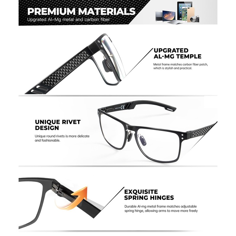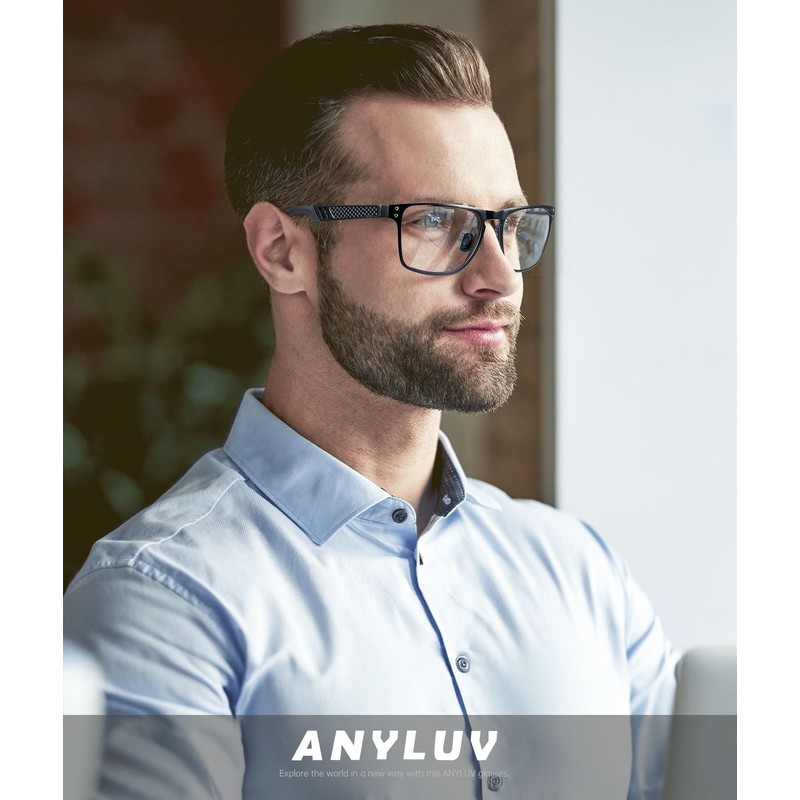 - 【Premium Al-Mg Material】Embrace fashion with ANYLUV stylish square glasses style. The clean lines ensure a sophisticated look that complements any outfit, whether you're working or relaxing. Lightweight al-mg frame body is more durable. Round rivets block design make this anti blue light glasses unique. Rubber nose pad prevents clear blue light glasses from slipping, which makes it firm.