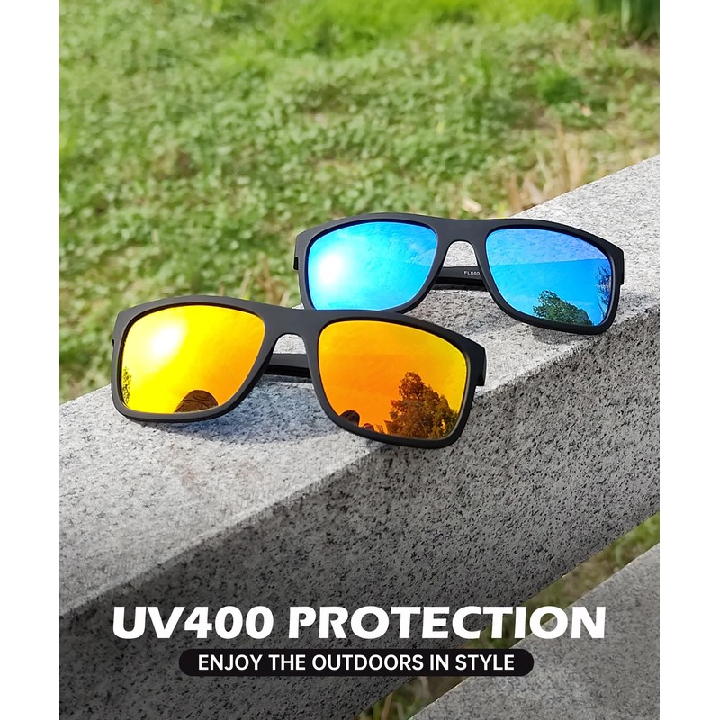 - Fashion Square Style Sunglasses▶Taking inspiration from the classic sunglasses for men blueprint, we created this upgraded mens sunglasses with wraparound frame. Matte black frame highlights silky texture, unique metal icon design of temples, all details make this mens polarized sunglasses offer greater comfort and it is also suitable for any occasion. Whether you ride a bike, run, fish, play golf or baseball, these polarized sunglasses can play a good role.