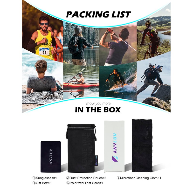 - High Quality Materials▶The matte frame of these polarized sunglasses for men is made of high-quality elastic plastic, which is ultra-light, flexible and has a good touch. The lenses of these mens sunglasses are made of polycarbonate (high temperature resistance, ultra-light weight and ultra-impact resistance), which means that ANYLUV sunglasses can be used for a long time without scratching or breaking.