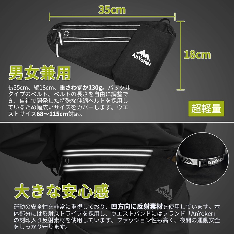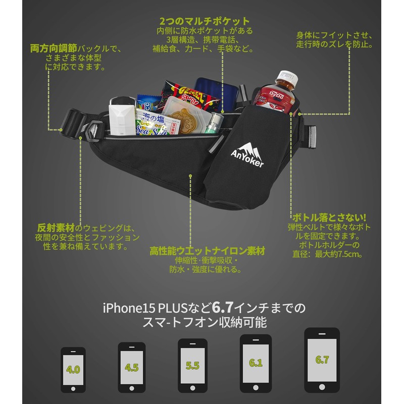 AnYoker YBBH Running Pouch, Lightweight, Waterproof, Non-Shaking, Fanny Pouch, Compatible with iPhones, Smartphones, Lightweight, Water Bottle, Waterproof, Running Pouch, Thin, Stylish, Men's,