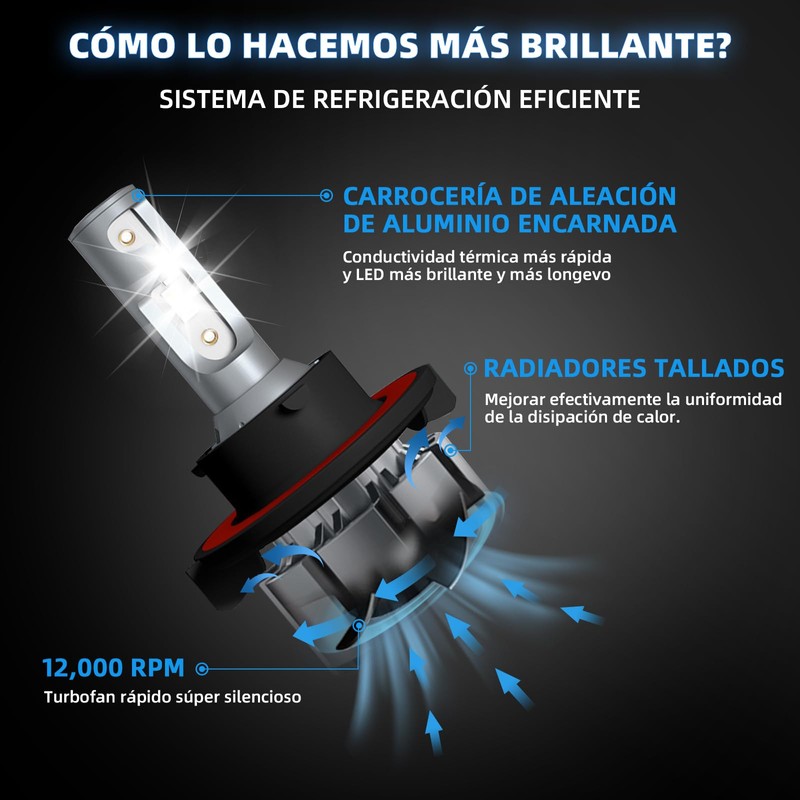 - 【50000 horas de vida útil】La serie Z2 adopta un cuerpo de aluminio de aviación 6063, un ventilador silencioso turbo de 12 000 RPM, un disipador de calor equipado y una vida útil de hasta 50 000 horas, equivalente a 150 halógenos.
