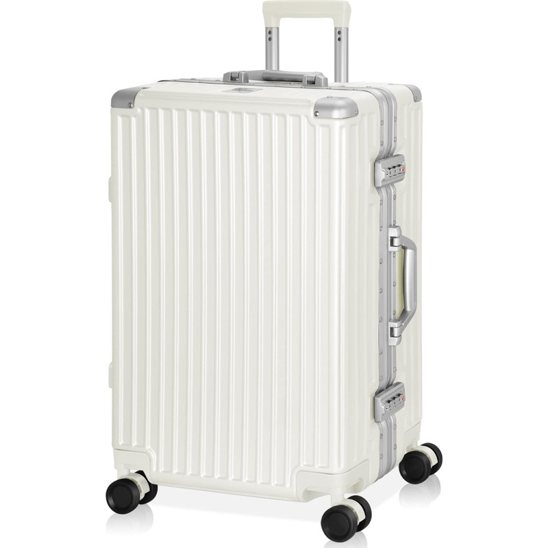 AnyZip Luggage Aluminium Frame Suitcase PC ABS Hard Shell TSA Lock No Zipper 24In White