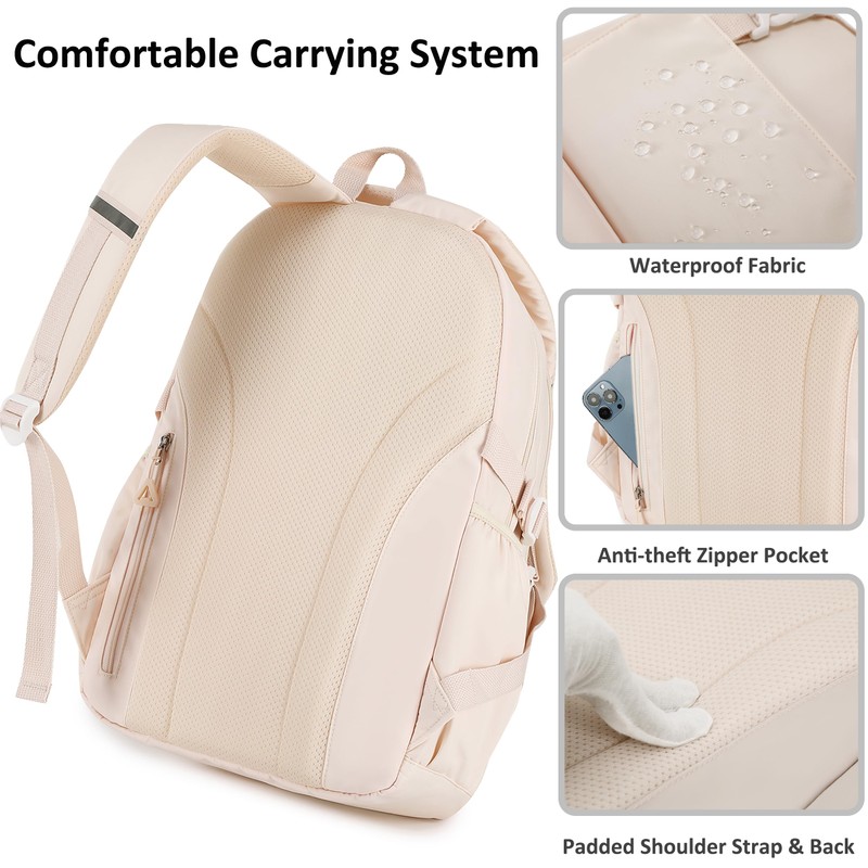 - 【Multi-compartments & Large Capacity 】: The big water resistant woman traveling rucksack has 5 separate compartments and two side elastic pockets meet daily storage. The front two compartments can hold charge device and other small items, convenient for your daily organization. The main compartment of includes laptop padded sleeve and inner zipper pockets. The middle compartment also can provide roomy space for necessities. The back zipper pocket to prevent your important items from theft