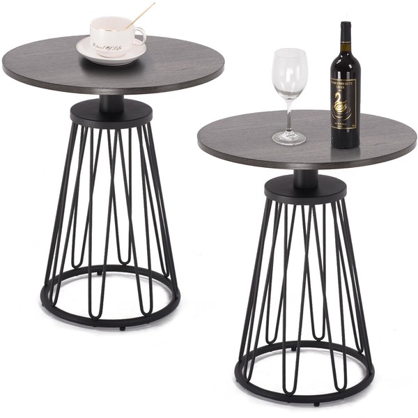 Ao Lei Round End Table Set of 2, Small Side Table for Living Room, Bedroom, Modern Side Tables for Small Spaces, Sofa Couch Table, Accent Coffee Table with Metal Frame Legs, Easy Assembly(Grey)