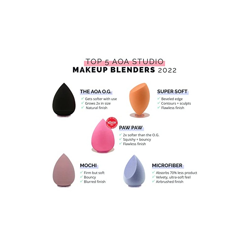 AOA Studio Beauty Makeup Sponge Blender Multiple Combo Set for Gift Makeup Blender Latex Free and High Definition set of 5 For Powder Cream and Liquid
