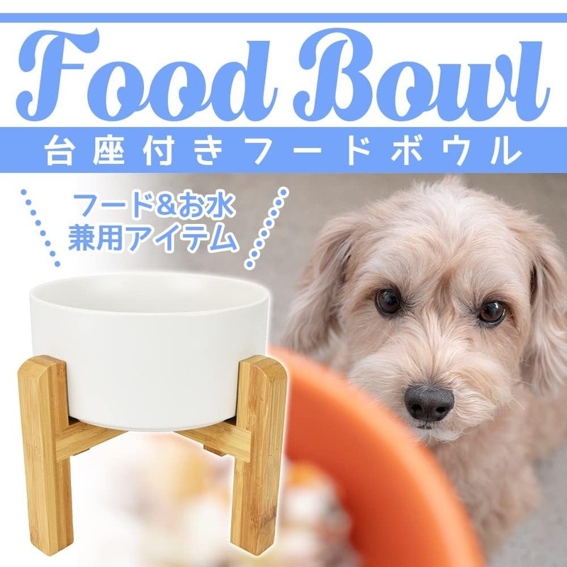 AoAkiSORA Food Bowl with Bamboo Stand for Pets, Small, 13.5 fl oz (400 ml), Water Bowl, Bamboo Base, Removable, For Dogs, Puppies, Dogs, Cats, Tiny, Simple, Bait, Water Bottle, Prevents Spitting Back,