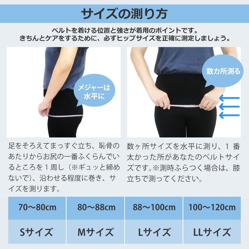 Since the pelvic has strong looseness from the late period of pregnancy, you can wear the Toko-Chan Belt 2 in a double wrap with the Toko-Chan Belt 2 to support your pelvis from both the pelvis and the hips. The "Toko-chan Belt 2" supports your pelvis from front to back, and raises your hips. This pelvic care belt is easy to wear and recommended for pregnant women to reduce back and hip pain, etc.