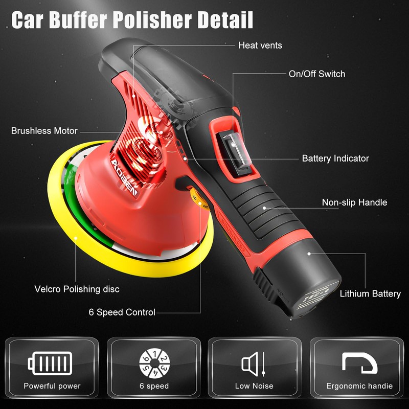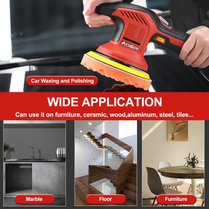 - ăWide ApplicationsăAOBEN buffer polisher is perfect for various polishing/waxing scenarios. Suitable for cleaning, waxing, and polishing car body and interiors,bicycle/motorcycle wheels, leather sofas, glass, and floors, wood surface treatment needs.With this cordless polisher, you will save more time&money.
