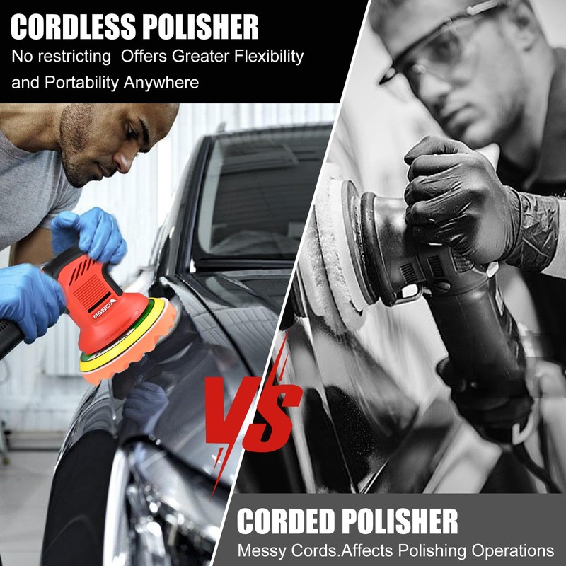 - đ ăConvenient & LightweightăCompared to traditional buffer polisher, our mini product has improved User-Experience with Cordless-Feature, it's just 1.75 kg/3.75 lbs (including battery), instead of carrying heavy wires around.car polisher is easy to handle, convenient, making it easy to carry and store. It's quick for beginners and won't harm your car's finish. Perfect for outdoor work.