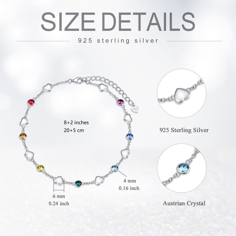 - Material: anklet sterling silver 925 and with colourful crystals. Hypoallergenic and shiny forever.