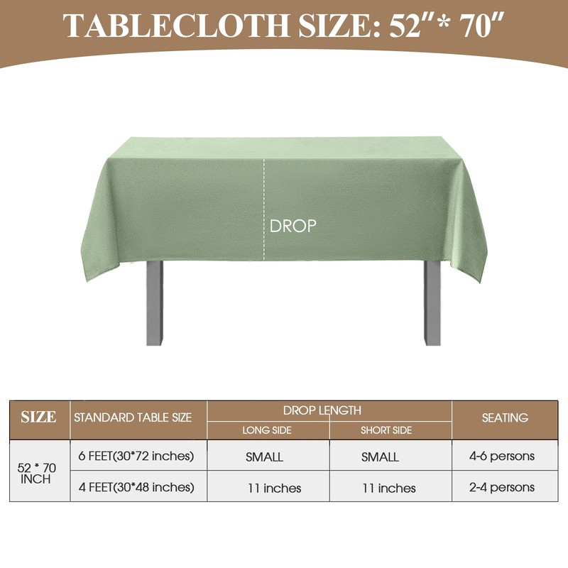 • Suitable Size: This 52*70 inch tablecloth from Aocoz is suitable for rectangular tables of 4ft and 6ft, please carefully measure the size of your table before purchasing to avoid buying an unsuitable tablecloth