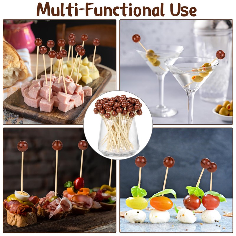 - Distinct advantages: designed for easy piercing, these sports ball end cocktails are ideal tools for assembling quick snacks or decorative toppings; the bamboo cocktail picks for appetizers are not only cute but also functional; these cocktail picks for appetizers glide smoothly through various items such as fruits, cheeses, vegetables, cupcakes, or meats