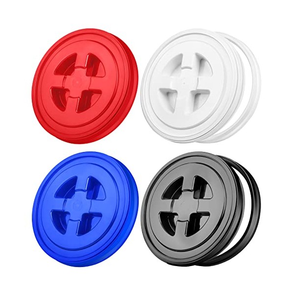 Aodaer 4 Pieces Gamma Seal Lid 5 Gallon Bucket Twist Lid Food Storage Container Lid Reusable Plastic Seal Lid Food Storage Container Lids, Mixed Colors
