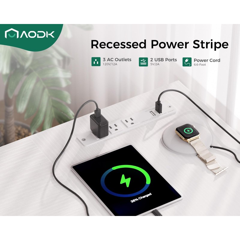 - Power Outlets & Charging Ports AODK computer desk is equipped with 3 power outlets & 2 USB charging ports for your electronic device. You can easily and conveniently charge smart phone, gaming gear and Bluetooth devices when you are working or playing games.