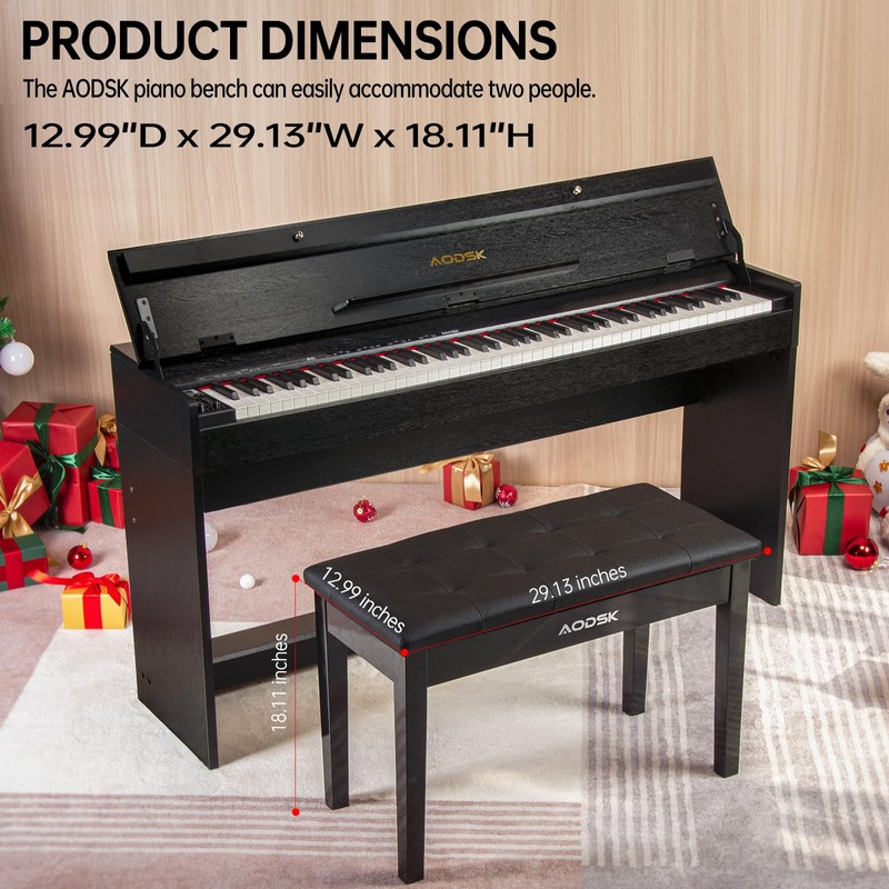 - ✔[Well-designed]:AODSK piano bench can easily seats up to two persons,ideal for both professional performances and household practice or teaching.Storage compartment beneath seat is special designed for storing several sheet music and books,which will give your music space a clean.