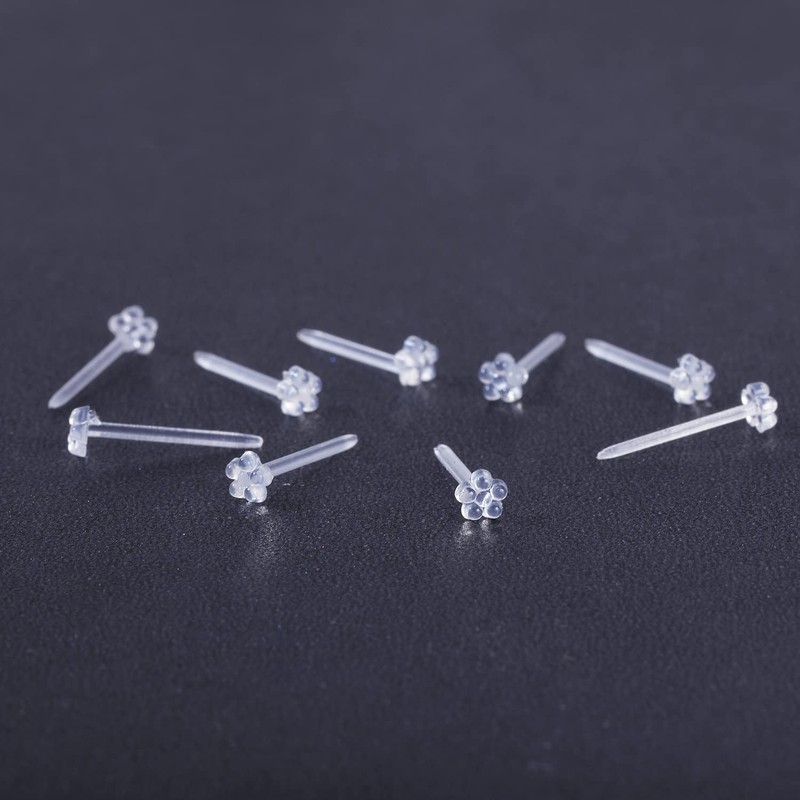 - VALUE PACK: one order including 5 Pairs of Silicone Clear Earrings OR15 pairs of plastic earring and backs, includes about 100 pieces of earring pins and 60 pcs ear hole cleaning line.