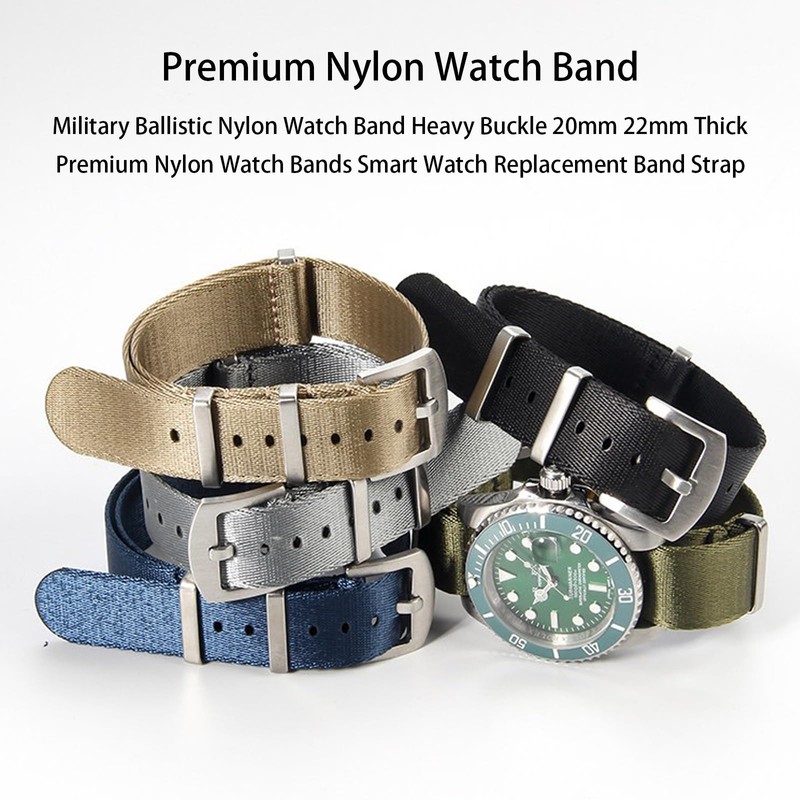 - 【Premium Material】1.5mm thickness ballistic nylon strap,Designed to fit most watches, these Nylon straps feature traditional military ballistic style and buckle fabricated from 316L stainless steel.Nylon strap is heat sealed and stitched. Neat stitching make the band durable. It has a smooth and comfortable surface,will never scratch your skin.