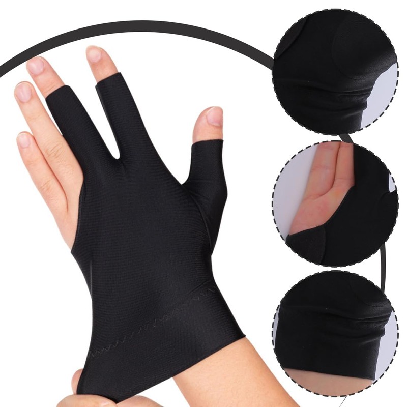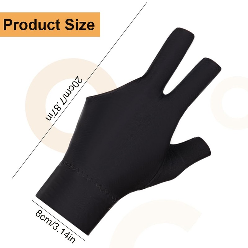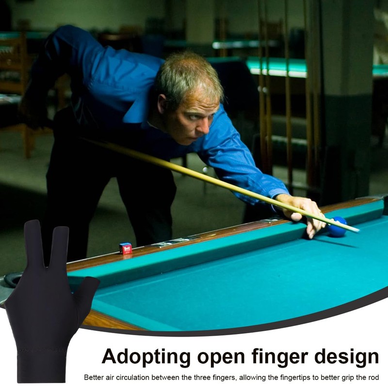 AOEVUIR 1 x Three Finger Billiard Gloves, Breathable Pool Gloves, Snooker Gloves, Non-Slip Pool Gloves, Open Three Finger Pool Gloves, Left-Handed Pool Gloves, Black