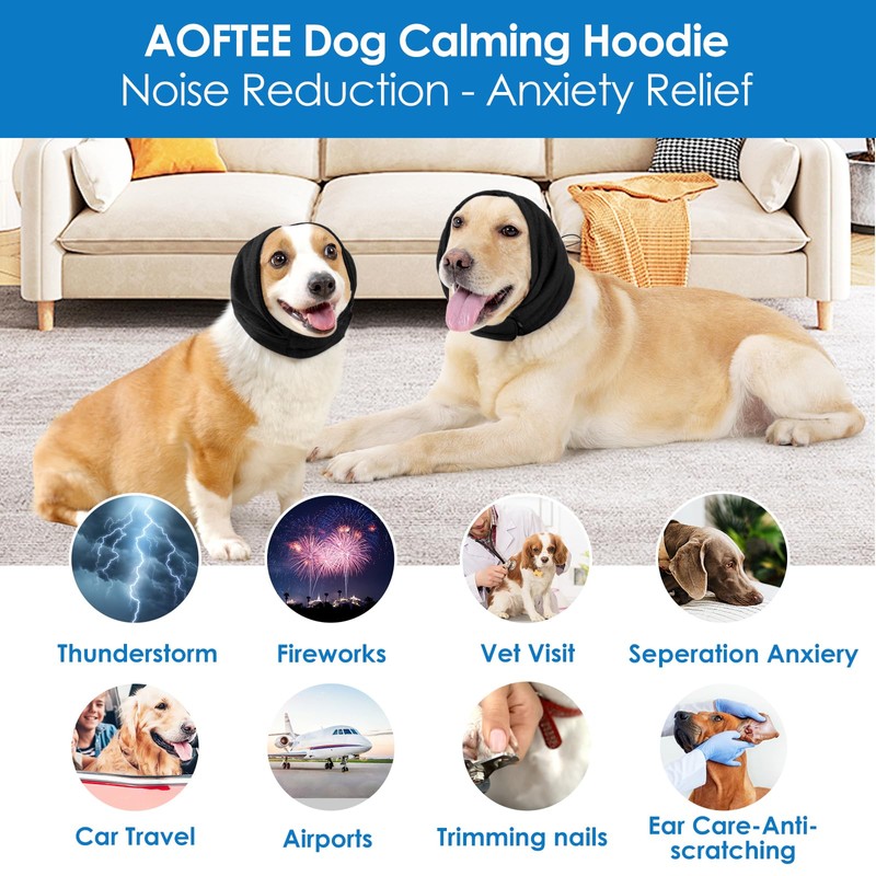 AOFITEE Dog Calming Hoodie, Ear Wraps for Anxiety Relief, Noise Protection Dog Noise Cancelling Ear Muffs, Headband for Fireworks, Force Drying, Grooming, Bathing