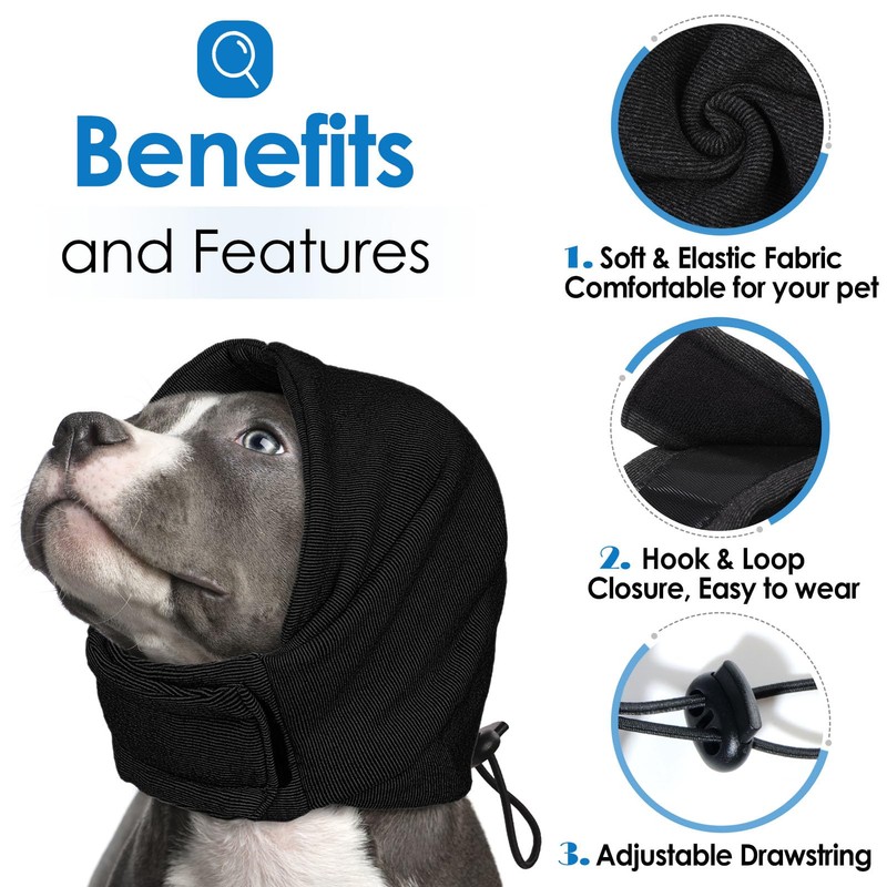 - Anxiety Relief Dog Head Cover: The full head and ear wraparound design can effectively relieve your dog's anxiety. The snug fit and constant gentle pressure is more like going under the master's touch to relieve anxiety