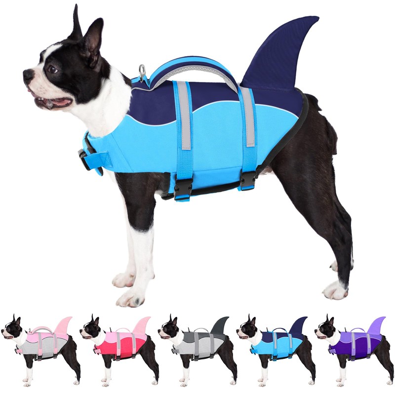 AOFITEE Dog Life Jacket, Dog Life Vest for Swimming, Shark Dog Life Vest with Rescue Handle and Reflective Stripe, Ripstop Dog Lifesaver Float Coat, Dog Swimming Vest for Small Medium Large Dogs Blue