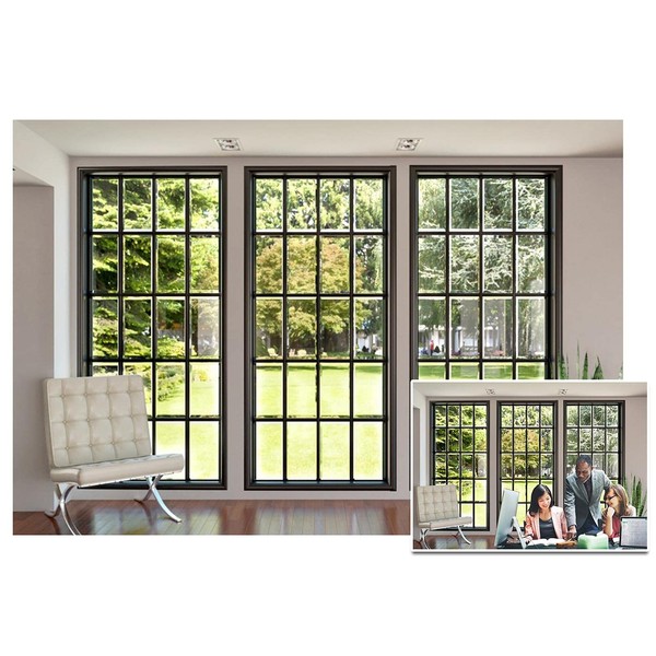 AOFOTO 7x5ft Business Office French Sash Window Backdrop Living Room Sofa Plant Photography Background Interior Casement Work at Home Modern Flat Furniture Apartment Decoration Residence Villa Props