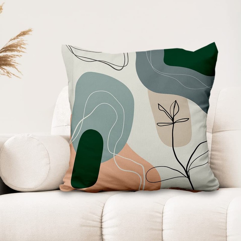 Aoihrraan 46 x 46 cm Set of 4 Decorative Boho Cushion Covers Autumn Leaves Minimalism Geometric Square Sofa Cushion Decorative Cushion Made of Linen Farmhouse Living Room Bedroom Outdoor Patio Garden Sofa