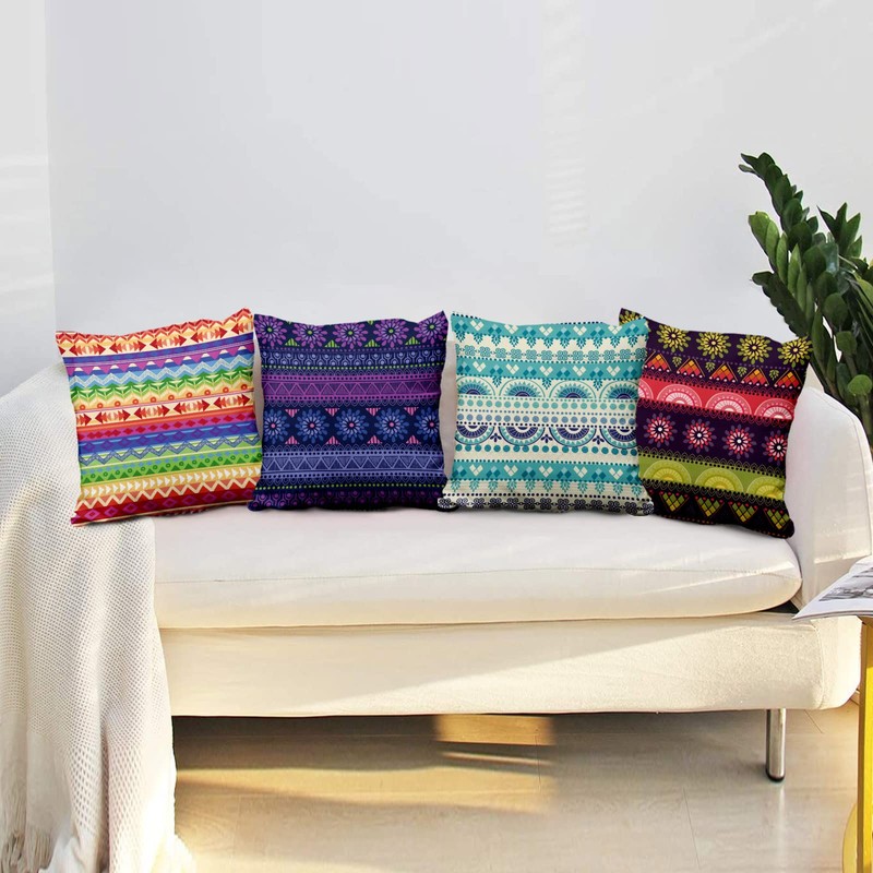 Aoihrraan 60 x 60 cm, Set of 4 Decorative Boho Style Cushion Covers, Colourful Bohemian Mandalas, Ethnic Pattern, Soft Plush Square Cushion Cover, Living Room, Outdoor, Balcony, Patio, Chair, Garden,