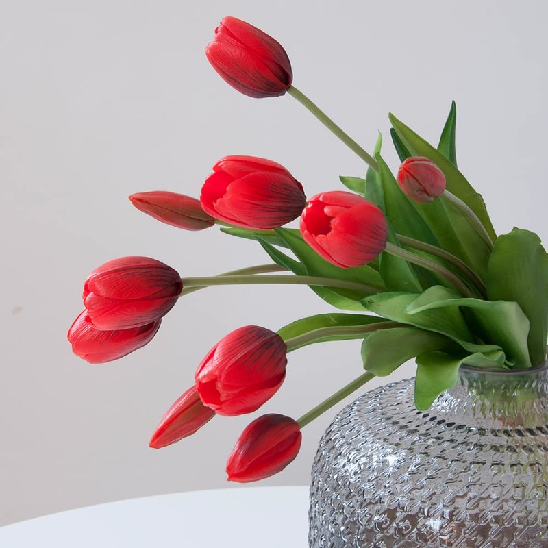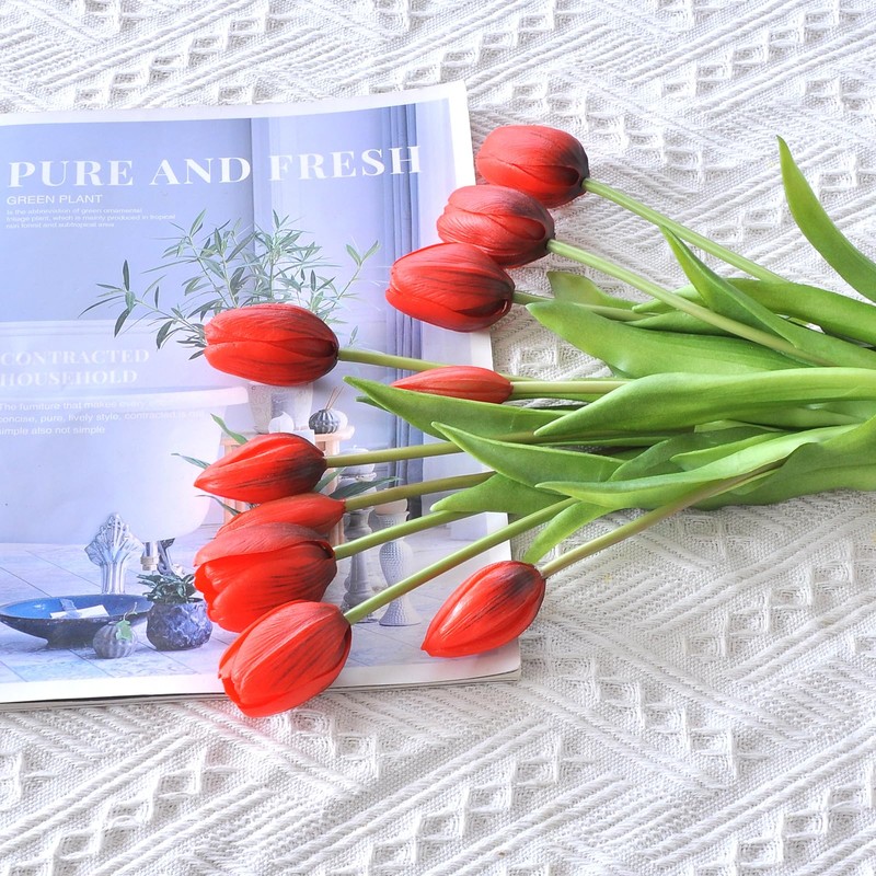 Aoivrb 10PCS Red Artificial Tulip Flower Real Touch Tulip Artificial Latex Tulip Flower Fake Bouquet Table Center Home Office Party Gift Wedding Birthday Garden Store Decoration (Red)